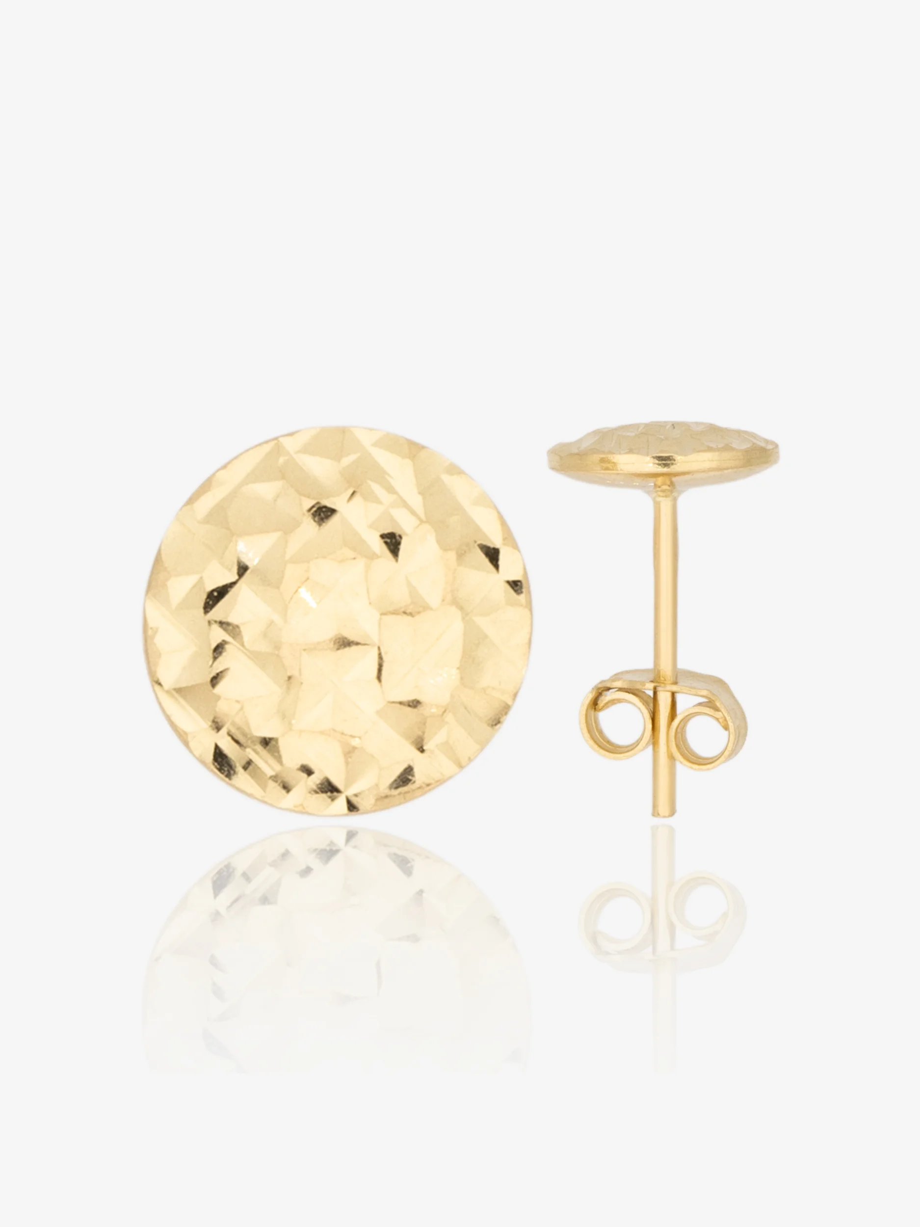 Złote kolczyki wkręty o diamentowanej powierzchni. Doskonale podkreślają zmysł estetyki, stając się wyrazistym akcentem jak i niezastąpionym dodatkiem do Twojej biżuterii. Średnica to 8 mm. Wykonane w całości ze złota próby 585. Zapinane na sztyft.