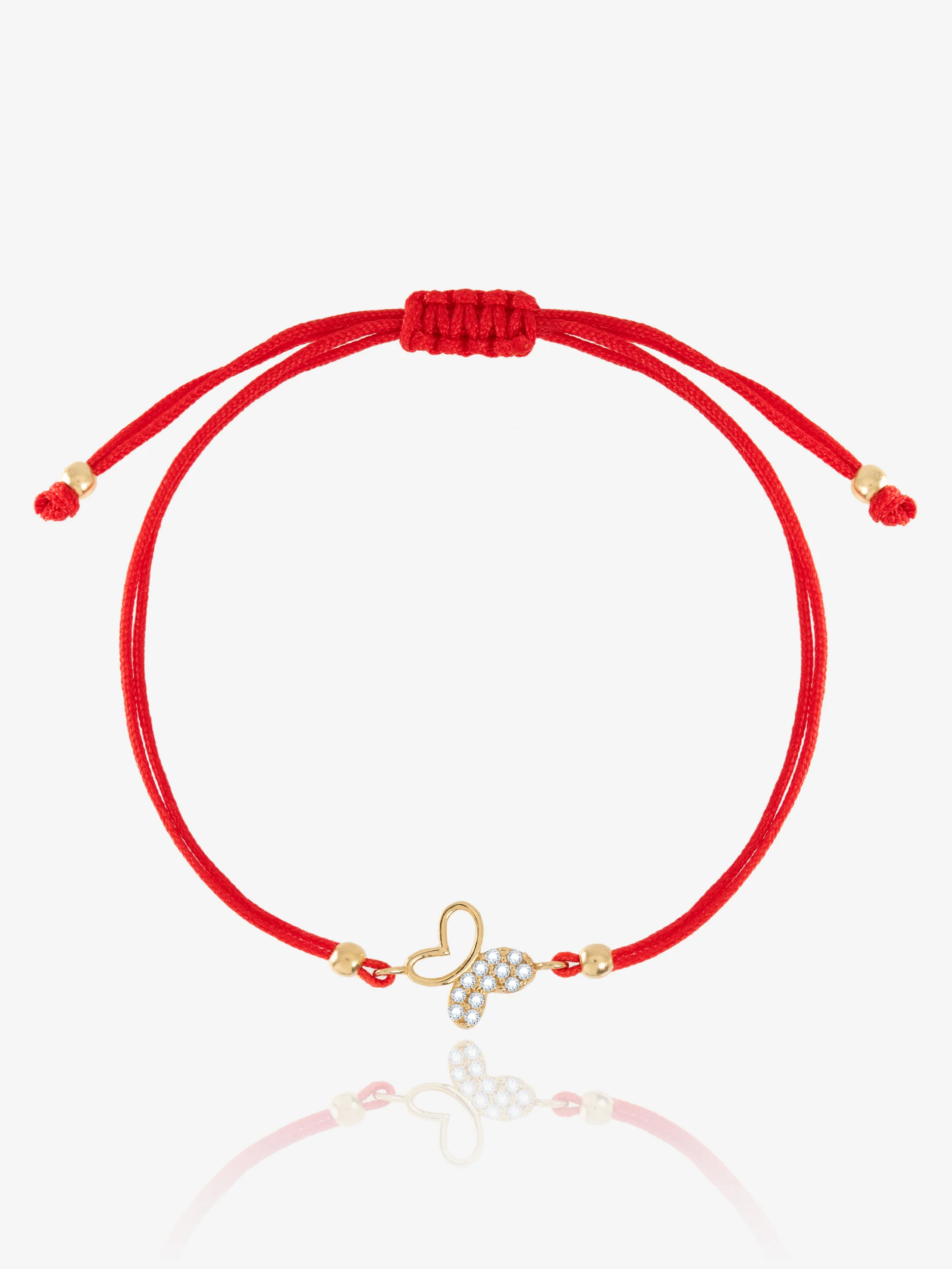 Bransoletka na czerwonym sznurku ze złotym motylem 585