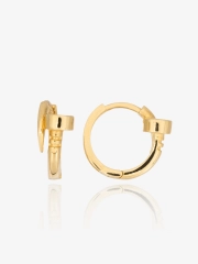 Złote kolczyki, których forma przypomina skręcony gwóźdź – motyw symbolizujący siłę, niezależność i wytrwałość. To biżuteria dla kobiet, które lubią klasykę ale, nie boją się nowoczesnych akcentów. Ich średnica to 12 mm. Wykonane w całości ze złota próby 585. Wygodne zapięcie zatrzask zapewnia komfort i bezpieczeństwo noszenia.