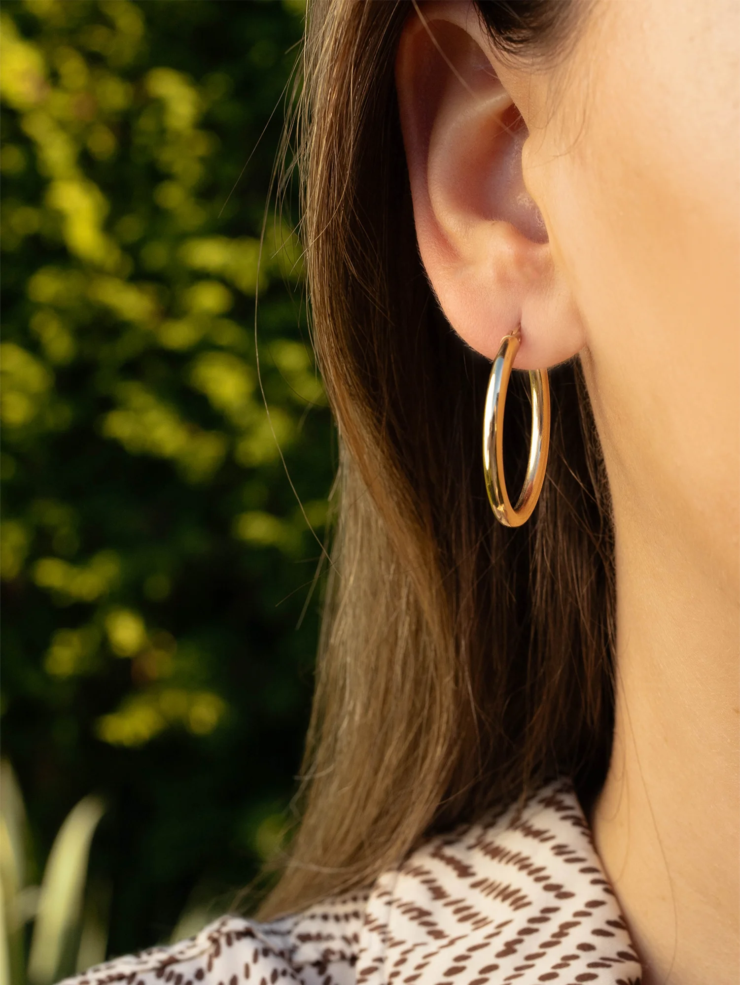 Złote kolczyki w formie dużych, owalnych kół. Ich długość całkowita to 32 mm, a szerokość 3 mm. To klasyka, która od lat niezmiennie pozostaje sprawdzonym wyborem kobiet. Zapinane na zapięcie typu kreol. Wykonane w całości ze złota próby 585.
