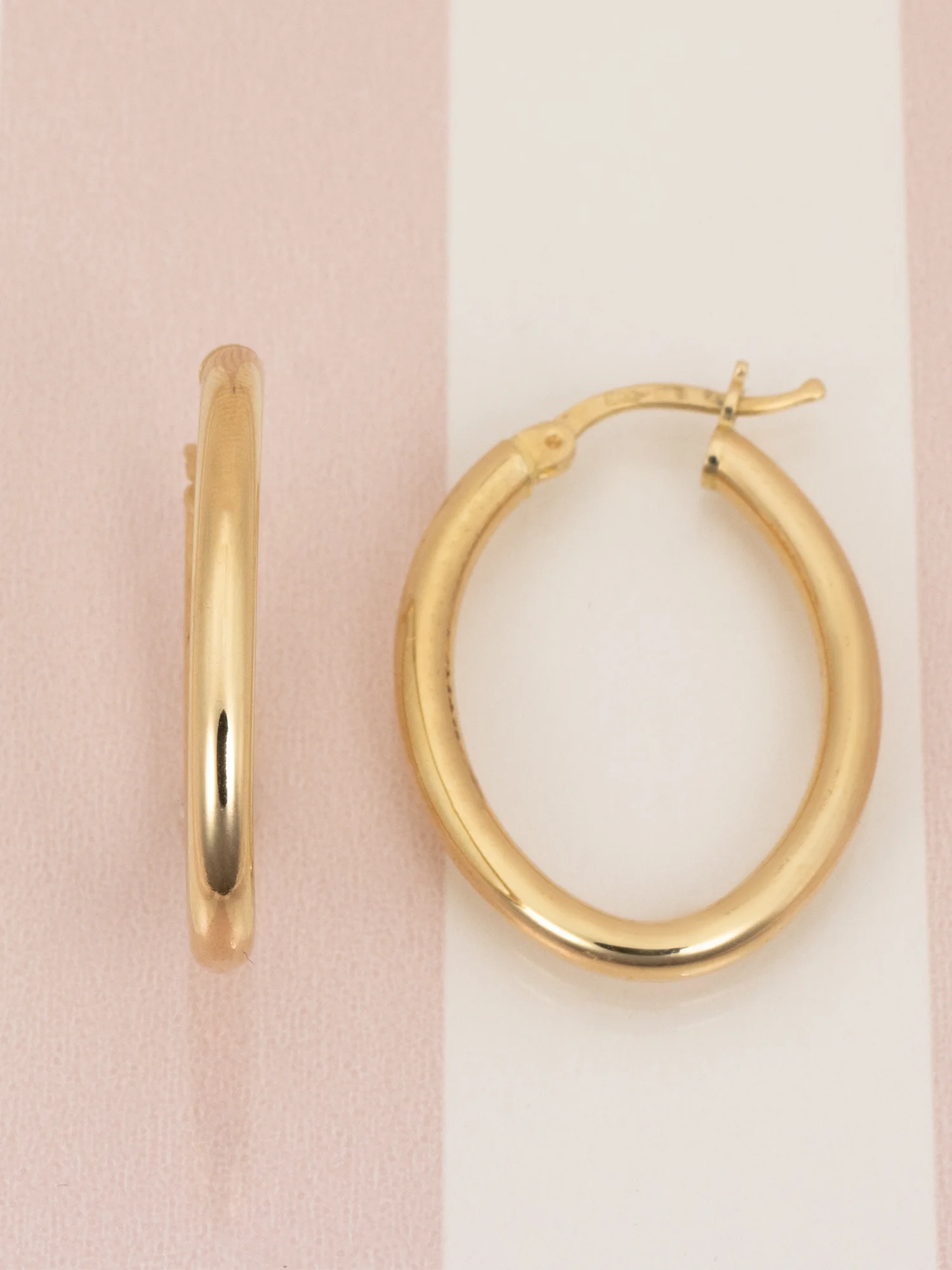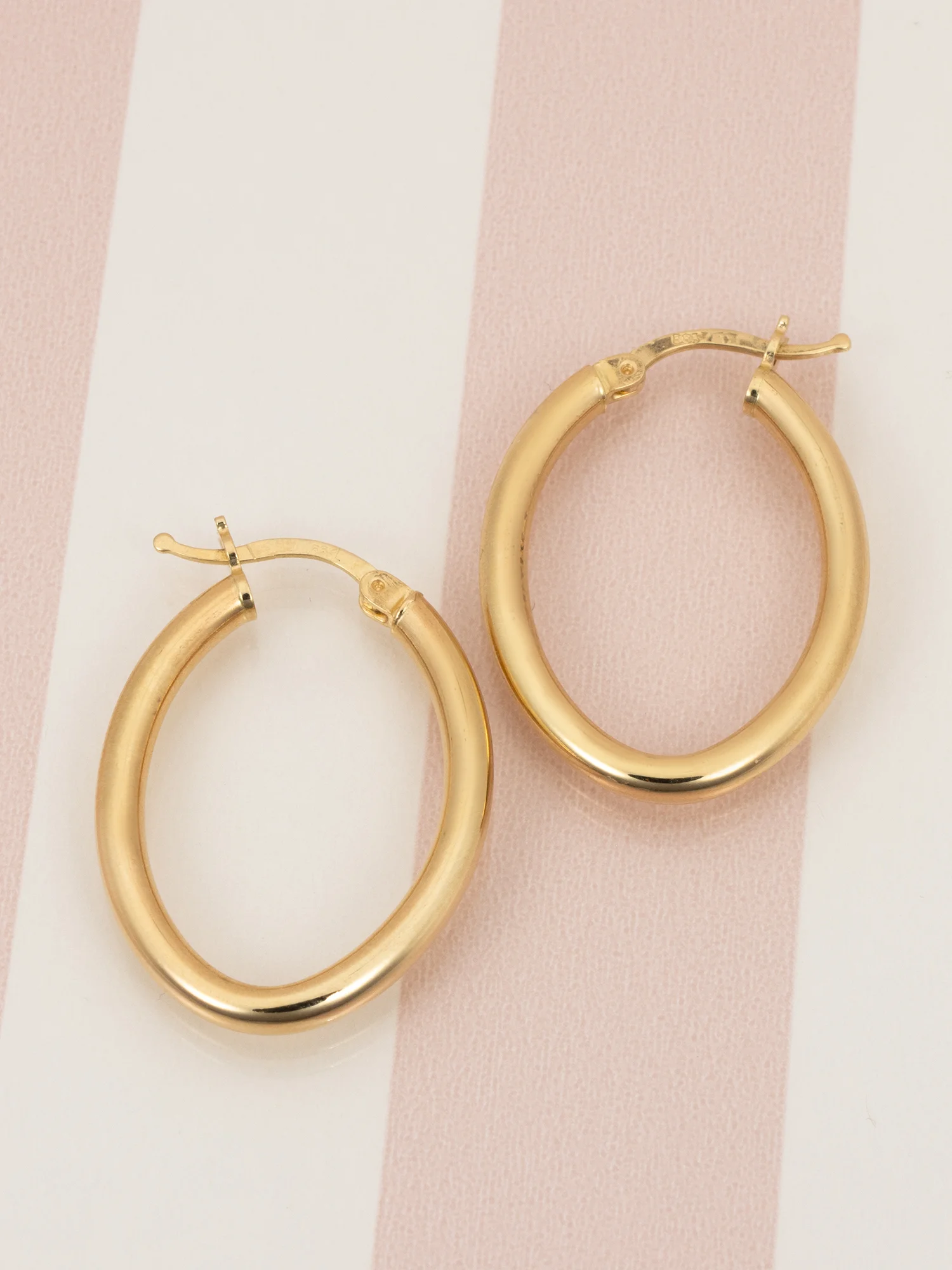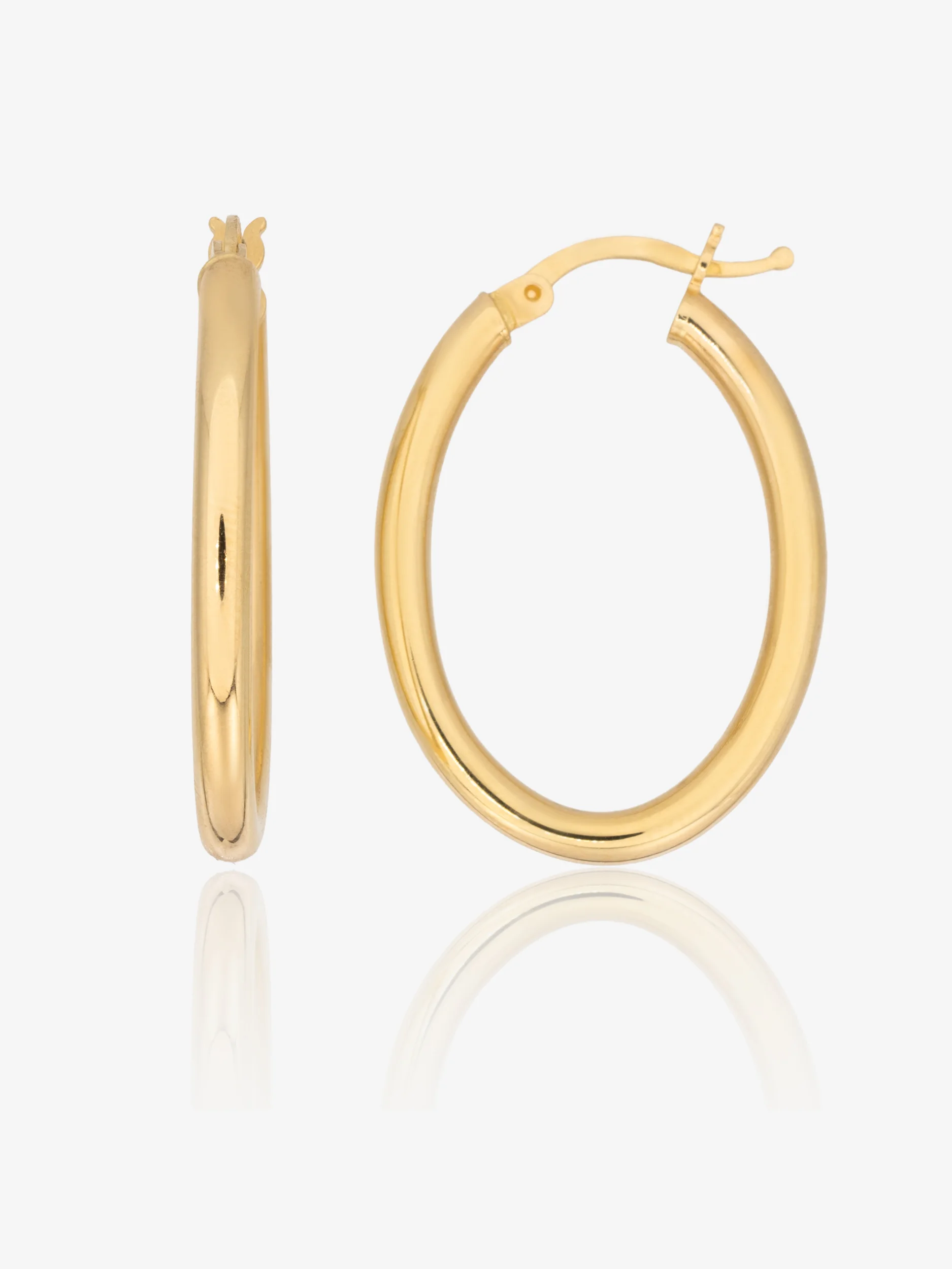 Złote kolczyki 585, owalne kółka duże, zapięcie kreol