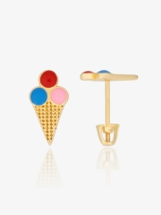 Złote kolczyki 585, kolorowe lody, sztyft zakręcany