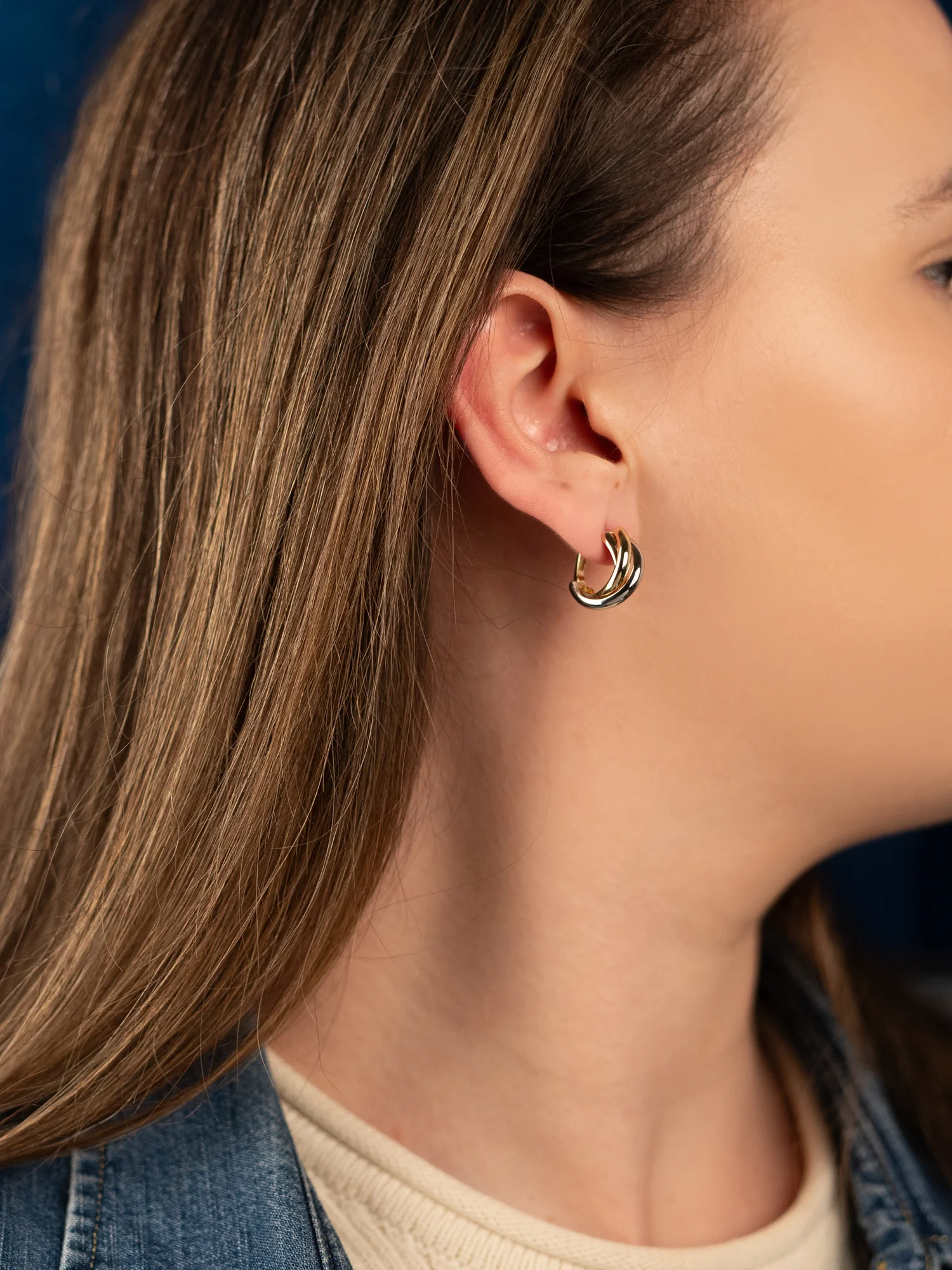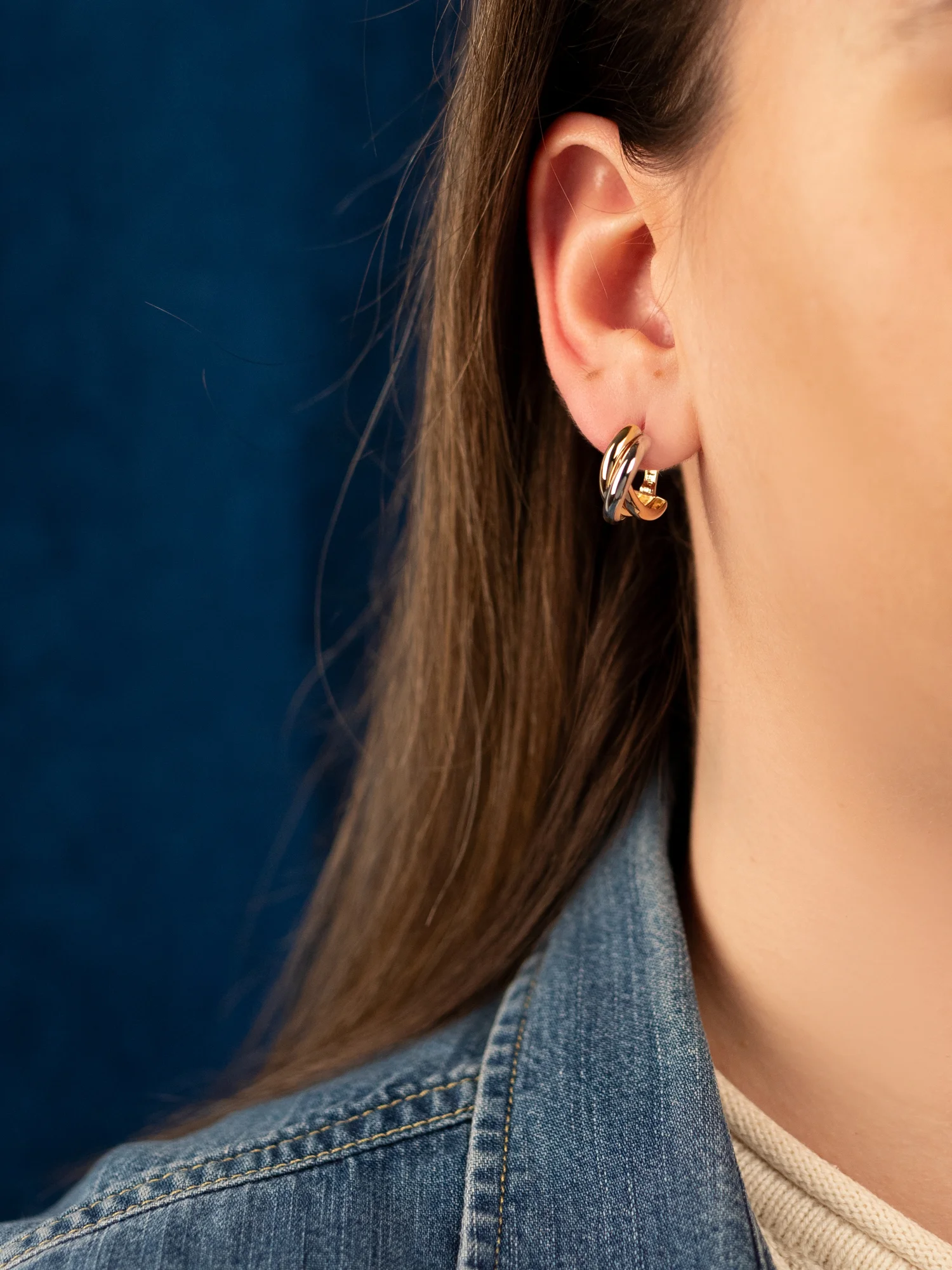 Wyjątkowe, solidne kolczyki wykonane w całości ze złota próby 585 zachwycają swoją trójkolorową kompozycją. Połączenie trzech obrączek o szerokości 8 mm z żółtego, białego i różowego złota tworzy elegancki efekt z odrobiną charakteru. Długość całkowita kolczyków to 17 mm. Wygodne angielskie zapięcie zapewnia komfort i bezpieczeństwo noszenia. Solidnie wykonane i wyjątkowo trwałe dzięki swojej wysokiej wadze. To jeden z tych modeli, w których widać kunszt złotnictwa i dbałość o każdy detal.