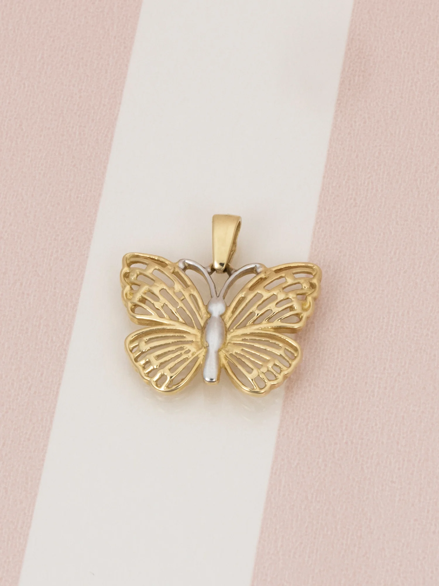 Złota zawieszka 585, motyl z białym złotem