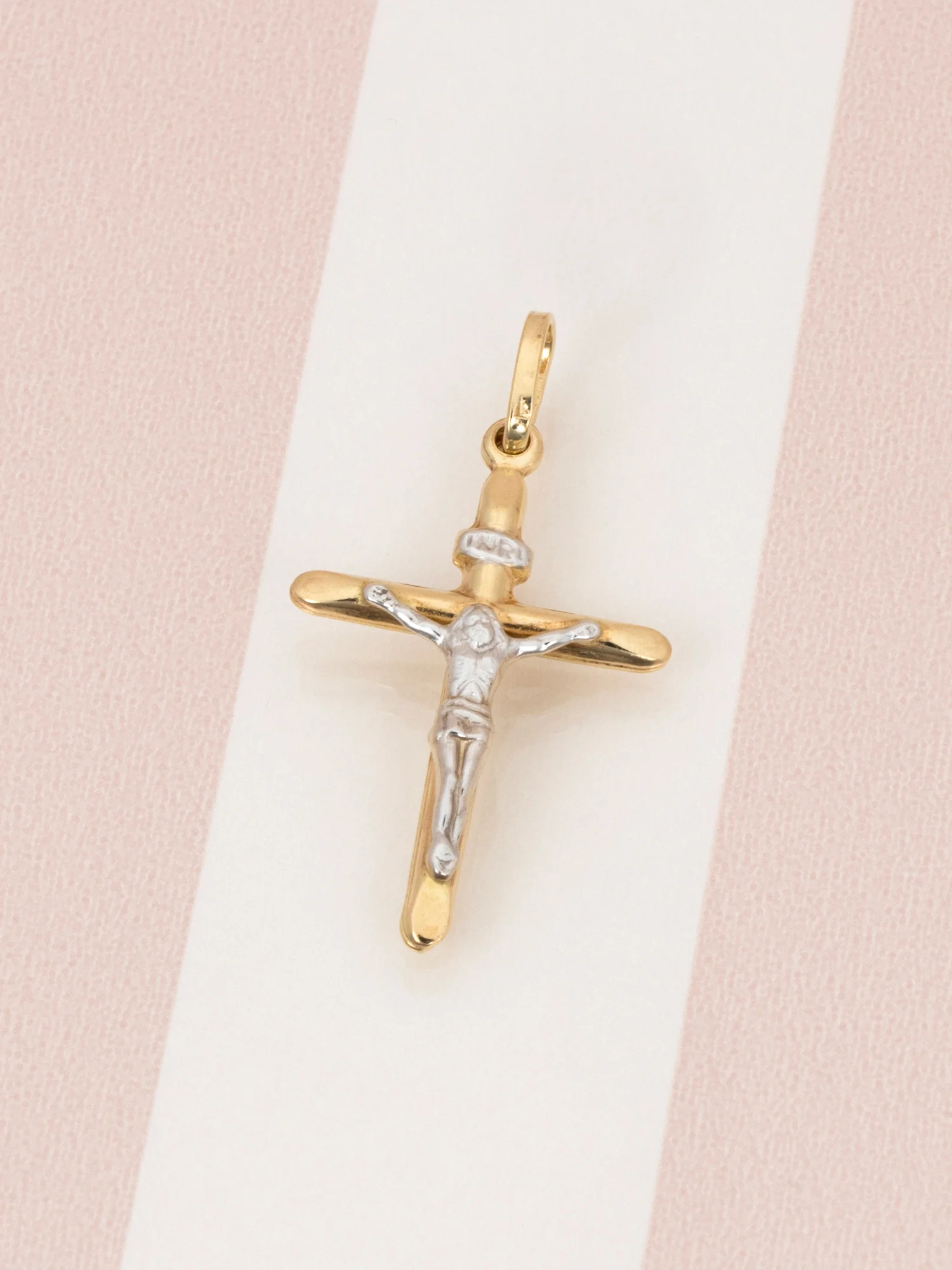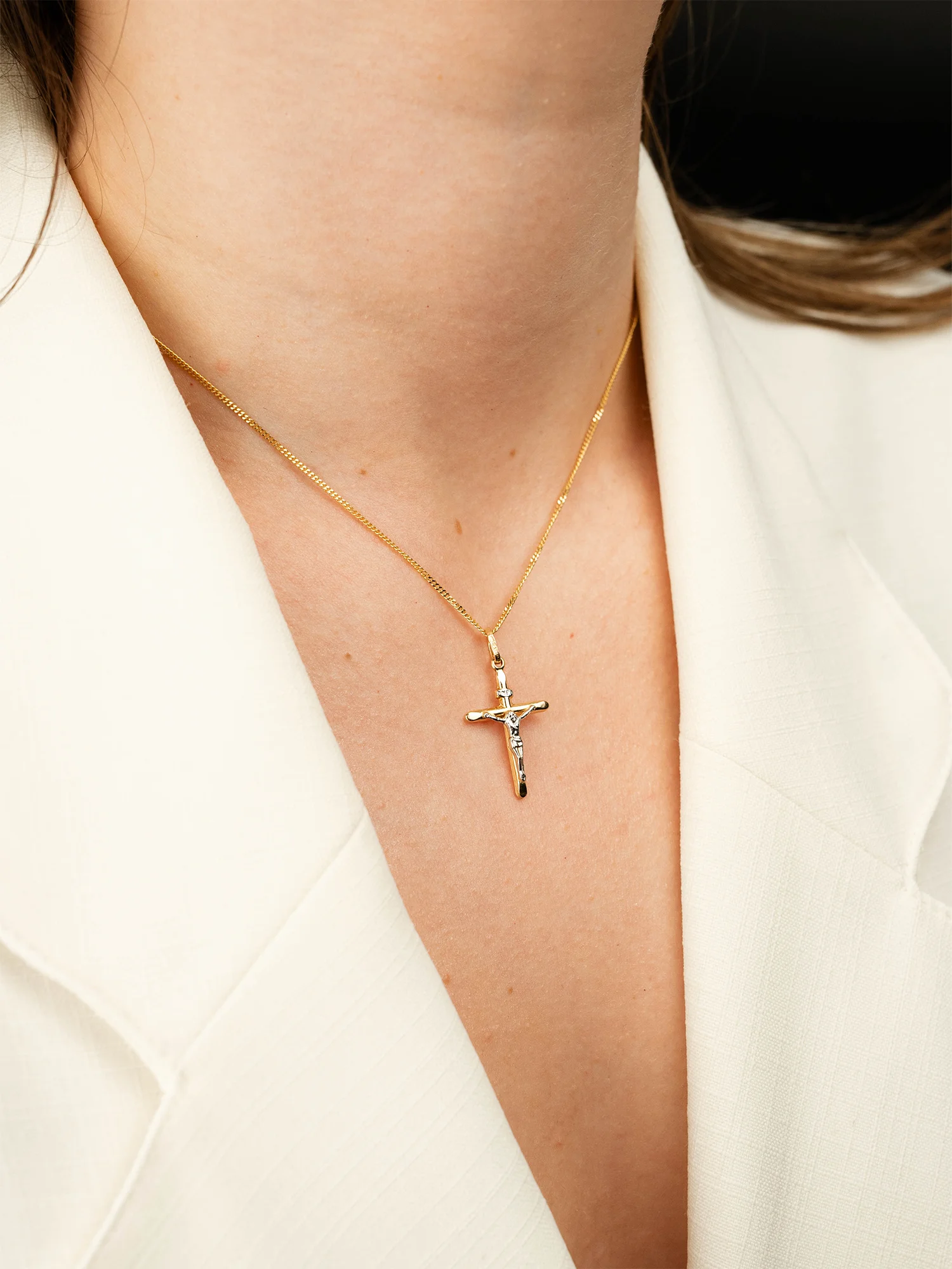 Złoty krzyż 585, wizerunek Chrystusa z białym złotem